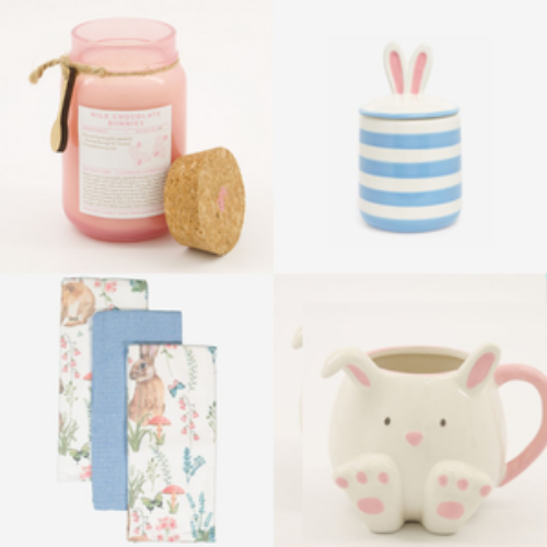 Bring Easter to your house with themed homeware from TK Maxx. They’ve got the most beautiful selection of decorative eggs and bunny-inspired ornaments, so whether you’re after a classy or a cute vibe, you’ll be able to find pieces that are just right for your home. Our favourites include the striped bunny ears canister, the multicoloured bunny print tea towels and the white dolomite bunny mug.