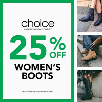 Step into the season with style and savings. Enjoy an extra 25% off all women’s boots in store.